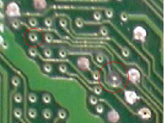 Ya compré el téster y he encontrado una pista que está cortada, bueno, parece como si estubiera quemada (en vez de pista hay un pequeño surco y el primer punto, el más grande, está un poco hundido). El resto de puntos ok.