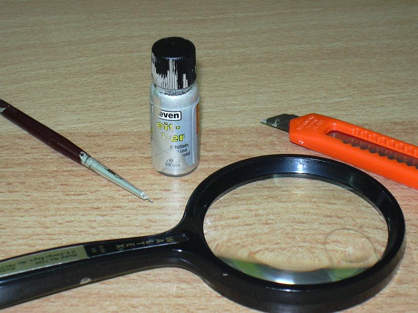 Aquí tienes la foto del bote y resto de herramientas. El bote está un poco derramado... pasa cuando lo agitas sin que esté bien cerrado [uzi] Pero no ha caido ni una gota en la placa ;)