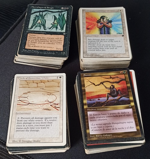 EDIT: Viendo la imagen que has puesto, tienes cartas bastante antiguas: Chronicles, Revised... míralas en la web, porque puede que tengas alguna carta bastante jugosa. En Revised salieron las tierras dobles por ejemplo: entre 150 y 600€, según la tierra que sea y el estado en el que esté. Si tienes alguna duda con alguna carta, no temas preguntar.