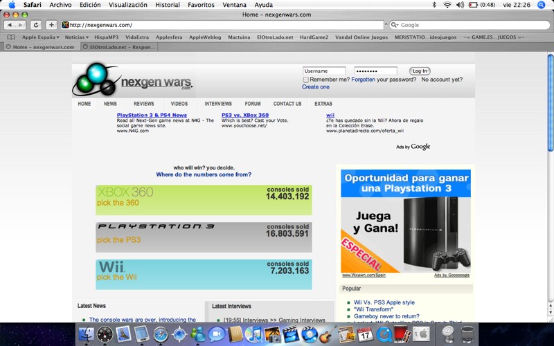 Tambien comentar sobre la 'caida' de Wii o 'subida' de PS3 en un futuro proximo. Ni de lejos, a menos que a Nintendo la mire un tuerto y no le permitan sacar mas de 1 juego por año. Mientras Nintendo siga tan fuerte como desde 2005, Wii continuara batiendo records y superando ampliamente a la competencia. Competencia que es un pollo sin cabeza que no remonta el vuelo con ya llevamos muchos lanzamientos de alto calibre ni lo remontara con otros tantos de los mismos, mas aun cuando los de altisimo calibre siguen en el limbo de los videojuegos (hola FFXIII).