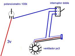 Mi amigo me dejo la ps3 de 60gb para que se la reparase (luz amarilla), pues bien le hice la operación de calentarla con la pistola y cambiarle las pasta termica. Pues bien la enciendo y funciona. Me pongo a hacer el mod y sigo el esquema que hay ( el que está correcto) y pongo la fuente de 3v en el común del potenciometro, en la otra patilla otro cable para el interruptor, y el cable gris que sale del ventilador hacia la patilla central y la otra parte hacia un extremo del interruptor.
