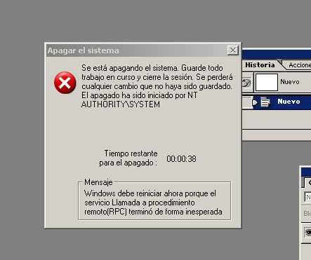 , me sale el mensaje que os adjunto y se me reinicia el ordenador. Incluso he tenido que escribir el mensaje en el word y pegarlo aquí porque me es imposible conectarme más de 2 minutos seguidos.
