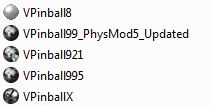 tengo, VP8, VPinball99, Vpinbal921, Vpinball995 y VPinballX