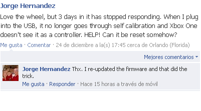 ojala nos solucionen esto pronto y no salgan con nada raro ,llevo 6 años jugando con volante e incluso tuve el fanatec que lo actualice con cada firmware y nunca tuve problemas
