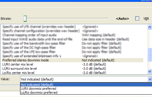 Y de esta copnfiguracion si hay algo que la persona que hizo la codificacion debe contemplar: Si configura la bandera de Downmix a modo Lo/Ro se tendra un sonido estereo puro y duro y se escuchara bien en cualquier aparato de sonido estereo. Por el contrario, si configura el modo downmix a Lt/Rt se esta usando una matriz que permite conservar el sonido 5.1 aunque solo se tengan dos canales de audio, si esta bien hecha la configuracion del downmix Lt/Rt se escuhara un buen sonido estereo en equipos estereo y se escuchara un aceptable sonido 5.1 Real en equipos de sonido 5.1, lo malo que sino se hace bien esa mezcla con la matriz se puede tener algo similar a lo que te pasa de perder algunos sonidos y escucharse mas fuerte otros sonidos.