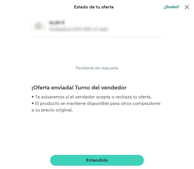 Así que le digo a mi amigo oye ofrece 20 euros por este artículo. Este mismo caso haciéndolo yo nunca me lo han aceptado. Haciéndolo con mi amigo el 90% de las veces lo aceptan.