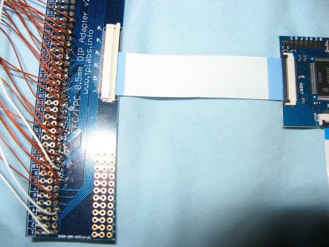 La faja FFC se conecta en el WiikeyFusion con los pines apuntando hacia ABAJO, es decir, hacia la placa; sin embargo en el adaptador FFC la faja se conecta hacia ARRIBA. Esto hace que los números del adaptador estén a la inversa. Es decir, el punto