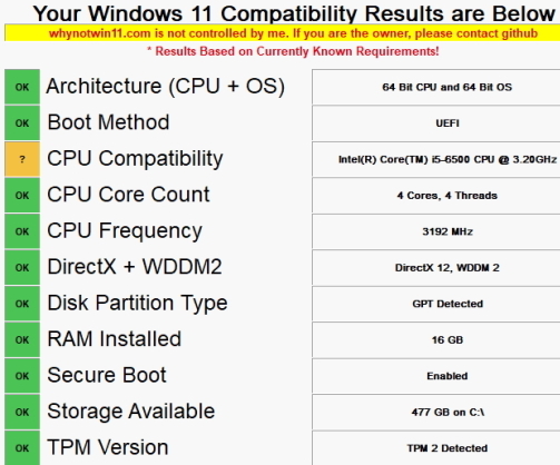 Al margen de ese tema, si alguien quiere saber mas exactamente porque le dice que su sistema no es compatible, aquí hay una herramienta mas útil que la de microsoft: