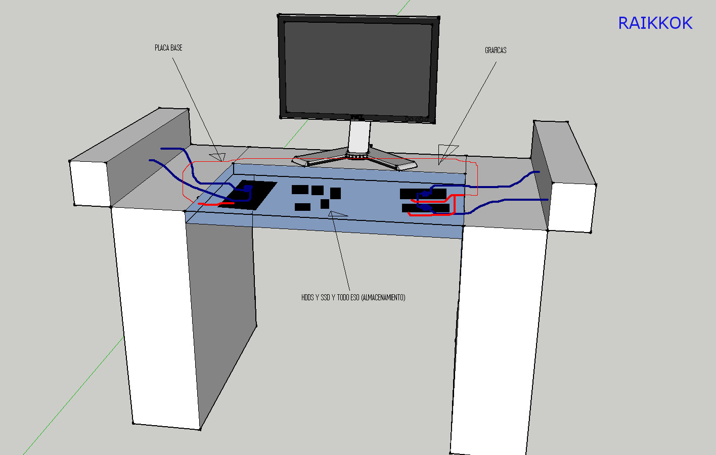 http://www.amazon.com/PCI-E-Express-Ris ... +16x+riser es un alargador de pci, son cortos, pero compras mil y pico xD, y los pasas por detrás del escritorio para que no haga feo. El recorrido en rojo da una idea de por donde podrían ir los alargadores.