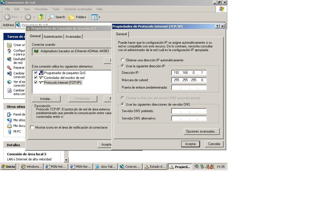 Haciendo ping a XBOX 192.168.0.1 con 32 bytes de datos:
