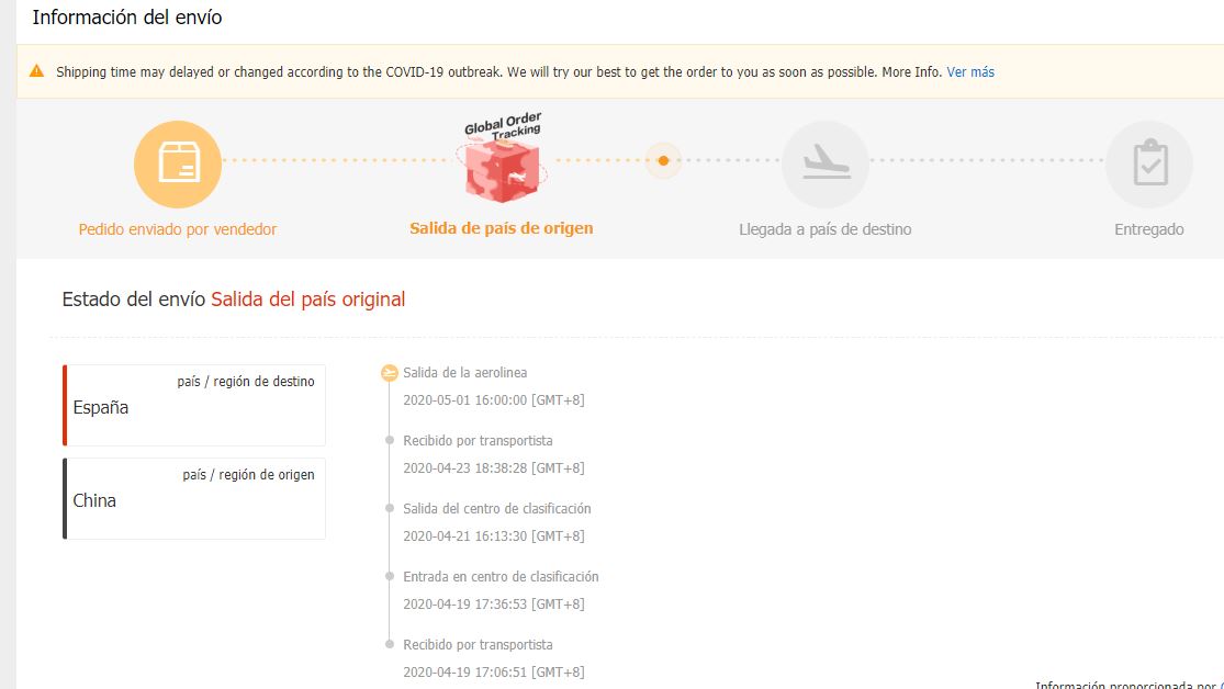 Quedan 4 días para que se cierre el pedido, he estado mirando el tracking y lleva sin movimiento desde el mediados de abril y en correos pone en camino.
