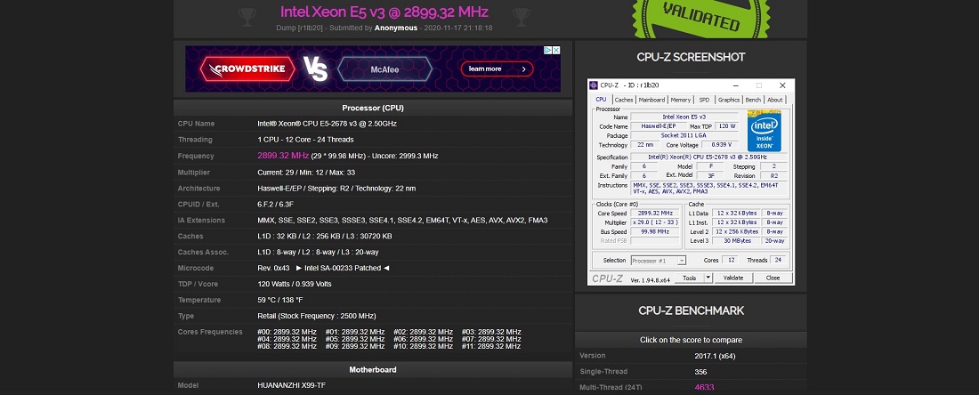Voy a poner el enlace de los resultados del test de cpu-z: