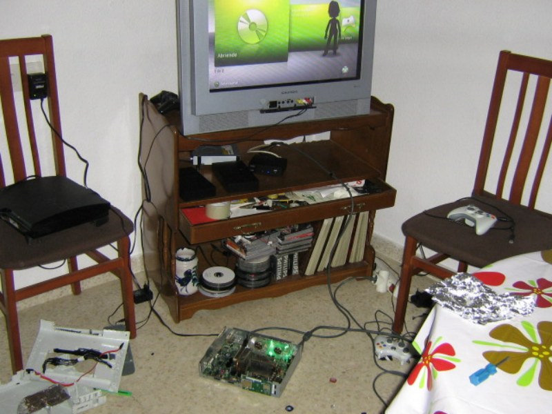 pues creo que nadie trata de loco a nadie, pero la verdad, el metodo, primero que nada lo digo, es una solucion temporal, el problema de las luces rojas, comprobado por medio mundo es la soldadura de mala calidad libre de plomo, llega un momento de tanto calentarse la soldadura que se pone similar a metal fundido(de hecho el estaño es un metal, pero lo pongo de esa manera para que se entienda como hierro fundido o algo por el estilo) en determinado momento la consola nunca mas volvera a vivir, el error 74 muchas veces sale nada mas con un calenton sin ventiladores, pero por experiencia propia, funciona un tiempo, igual cambiar las x por tornillos, mas si son placas zephyr creo que estas son las mas pesimas, y pongo mi experiencia, siempre he sido incredulo con el tema del hornito, un dia sin mas, que no tenia mucho que hacer, pues tengo muchas placas de xbox en mi taller, y pense vale no esta de mas probar con la idiotez esta, total, muerta esta no puede pasar nada mas, y vale mencionar que dije probare con una xenon, a la cual le habia hecho jtag, la cubri con papel aluminio, etc etc, como dato les digo que cualquier flux de buena calidad debe de funcionar, aca se conoce como pasta para soldar, igual el problema esta en hacerla llegar a las soldaduras, lo de menos cuando se tiene pistola de calor, en fin, todo como se debe, horno precalentado, arriba y abajo, meto la placa, 15 minutos, y pues señores, lo que siempre me imagine, ahora en vez de error 0020, error 0022, en fin mas muerta que de costumbre jaja