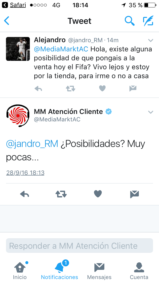 Desde luego las tiendas ya tienen las copias de sobra para vender los juegos, será alta la multa de EA para lanzarlo porque no me explico como un juego tan demandado y a su vez tan esperado no lo ponen a la venta y se van quitando el stock de encima, perfectamente 300 copias por 57 euros de media unos 16200 pavos que pueden llevarse más o menos hoy por comercio grande, así que no entiendo porque no se quitan de encima llamadas y preguntas todo el día sobre lo mismo.
