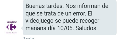 Svidor escribió:techuzo escribió:yo estoy un poco mosca, por que el sabado me llego el mail de carrefour para ir a recoger el dia 10 y hace un rato me mandan uno igualito pero cambiando la fecha a día 11, sera verdad¿?¿? joder que tenia la tarde de mañana pedida y todo para hacer un estreno como se merece. Aun así me pasaré mañana con la fotocopia que tengo que pone día 10, pero me temo que me van a joder..