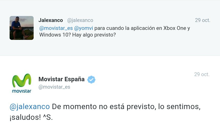 jalexanco escribió:Lo siento pero vengo con malas noticias. Parece que Movistar no tiene intención de sacar Yomvi ni en la ONE ni en W10. Si Con "Prisa" iban lentos con el tema, peor nos pinta YOMVI ahora en manos de estos.
