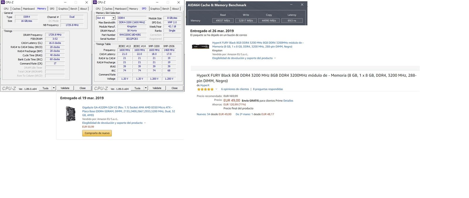 Memos 3200 CL18 que suben a 3466 CL16 por 49€ 8GB dando 49.000 de lectura y casi 53.000 de escritura...