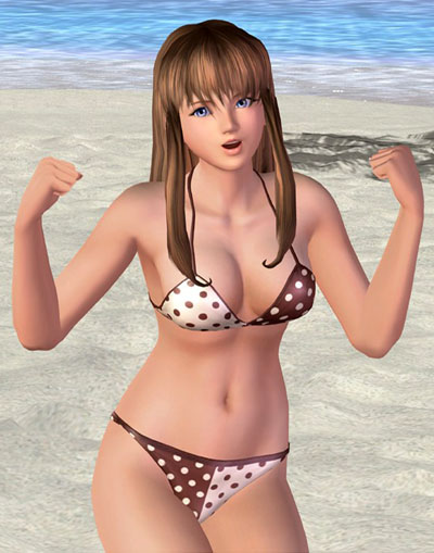 Imagen de Hitomi, personaje de los videojuegos Dead or Alive, en Dead or Alive Xtreme Beach Volleyball (Tecmo).