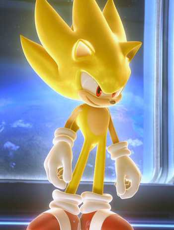 Imagen de Super Sonic, la súper-transformación de Sonic el erizo, al comienzo del videojuego Sonic Unleashed (Sega).
